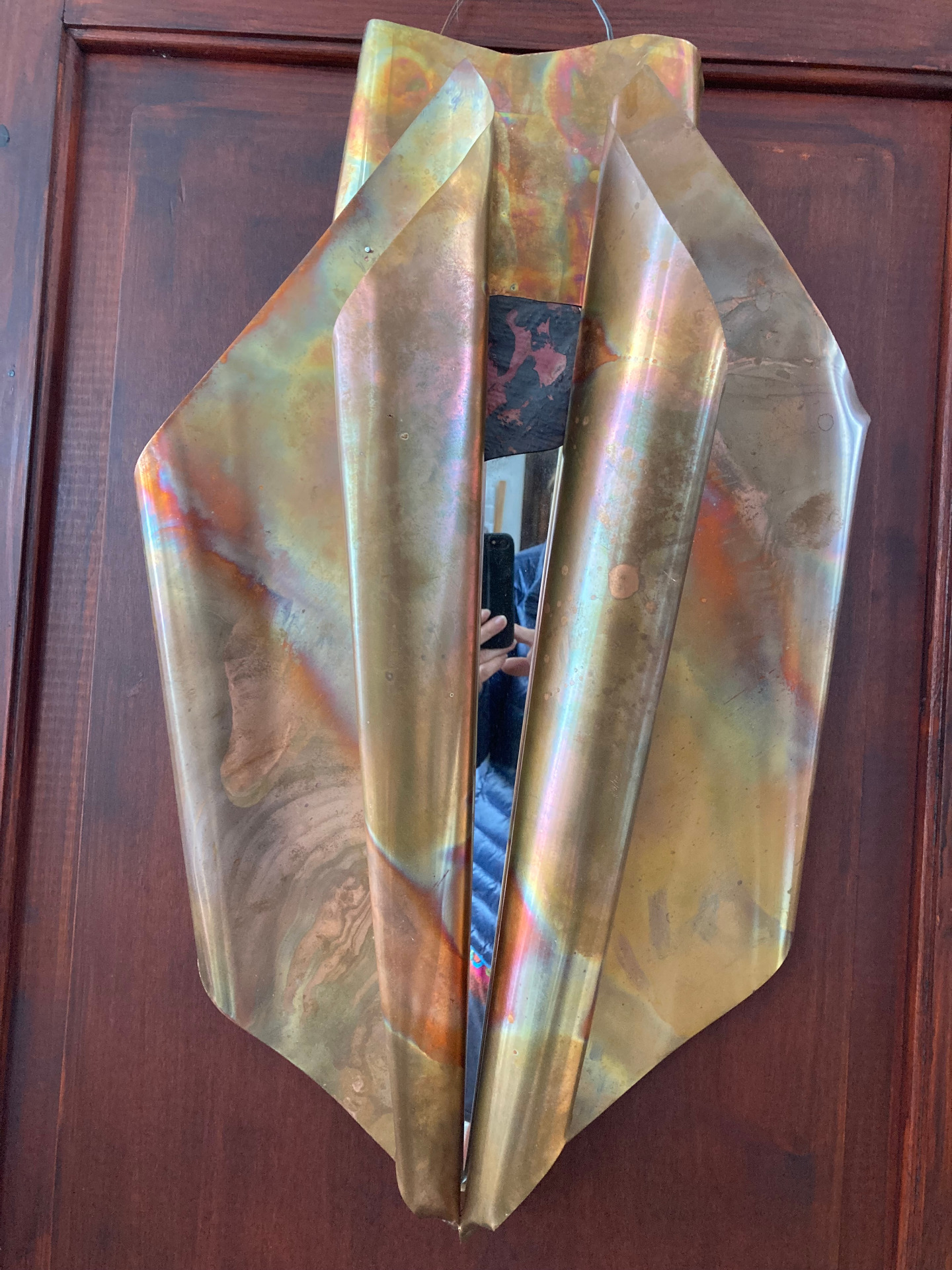 Kovács Éva_A TITOK KULCSA_45 x 70 cm Anyag_ vörösrézlemez, fa, tükör ,2025_